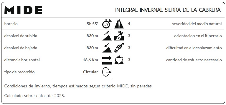 Hay que tener en cuenta que se va a realizar el recorrido en condiciones invernales y que se ha de tener experiencia en distancias y desniveles similares cuando se dan dichas condiciones.